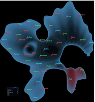 What was retained was the design of having a ship moving through space. Banado proposed an isometric tileset for the map/interior of the ship but we didn't end up implimenting a ship interior asides from the UI. Here I thought of Deepolis with its colored zones depicting oceanic depth and creature encounter intensity. So that's what Banado coded for the minimap with the features of clicking to move to a location and shift clicking to que a path with point icons and a line between the points. The map was linked to a color checker linked to spawntables which would roll for encounters after a given distance interval.